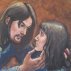 Watercolours and acrylics on paper. This is not what customer got. I made some changes after this shot, but I loved this version much more in spite of Boro’s right hand. BTW, the final version can be seen here (foul photo in the dark).