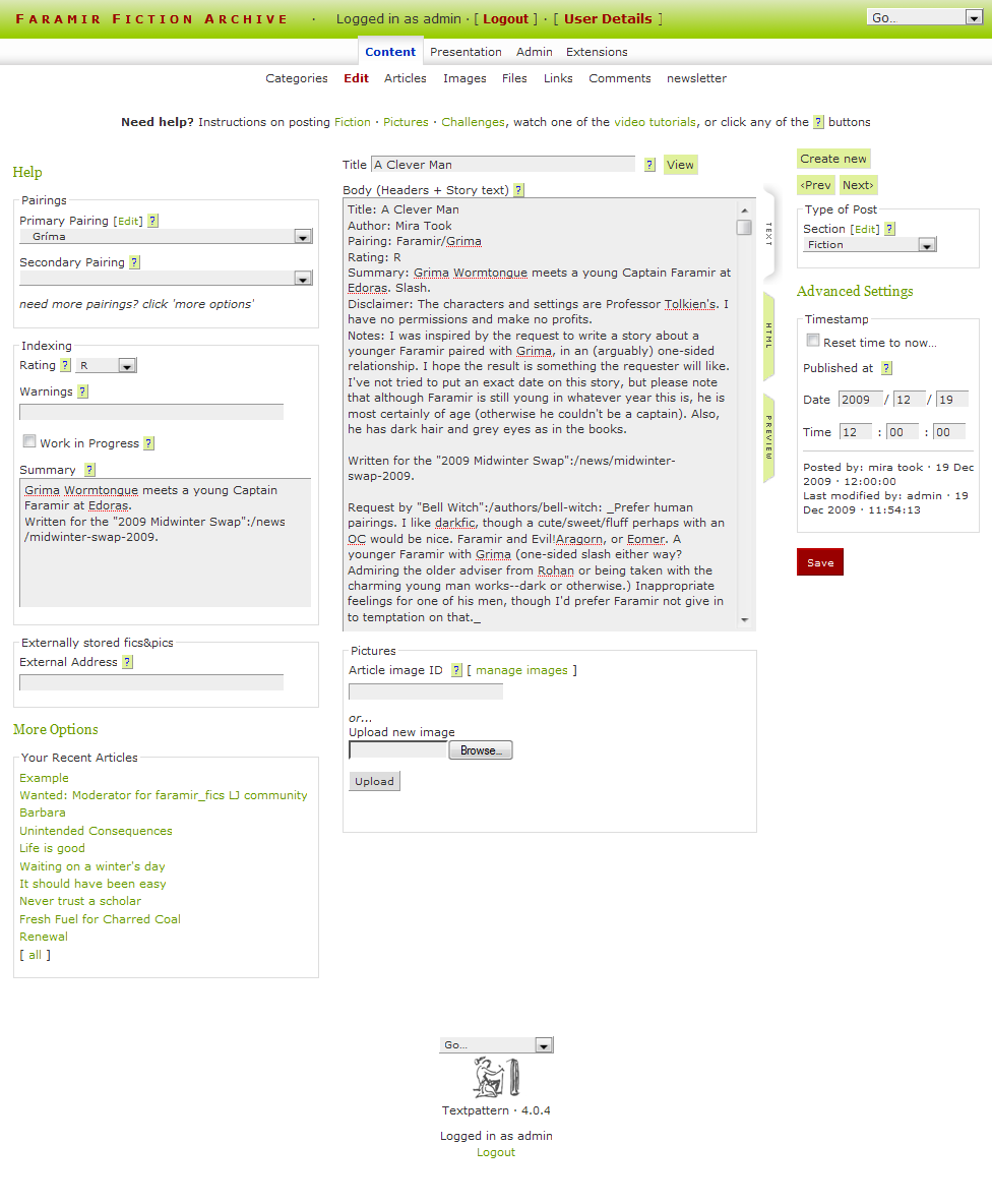 Posting Fiction: an example