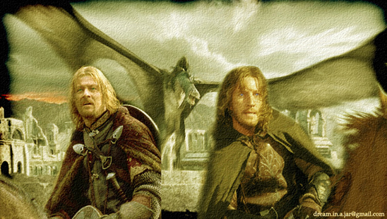 A photo manipulation to put the wonderful sons of Gondor together, to let us see how the two brothers would fight in a battle, side by side. Posted Mar 30, 2006 |