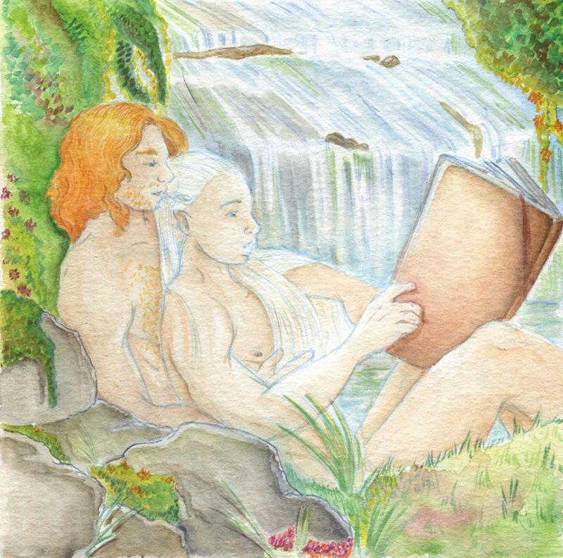 What an enchanting scenery! Of course there´s a book involved… I can basically see Faramir enthuse his companion for ancient lore – even though Haldir´s original intentions might have been completely different! X)